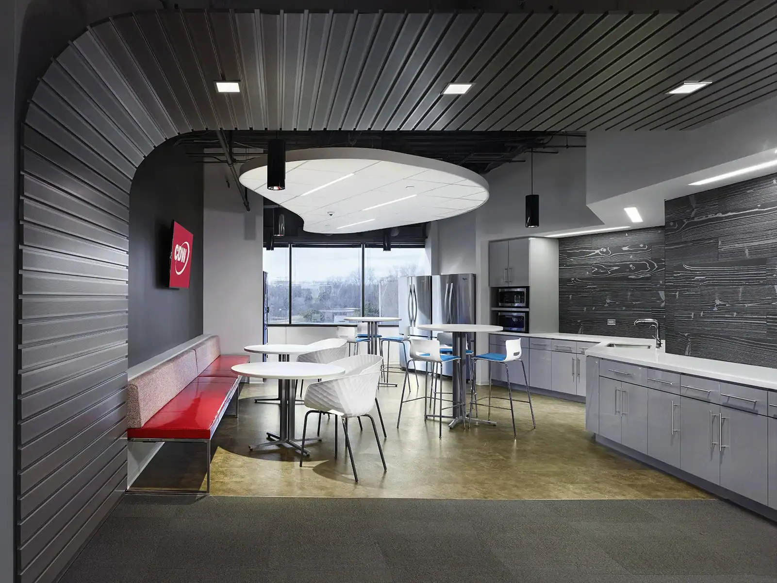 The relocation of CDW’s headquarters to Lincolnshire, Illinois was a monumental undertaking. Staff from three different facilities were brought together in this 209,000 RSF project which included connecting two buildings with a newly designed three story sky bridge and redevelopment of a shared ground level atrium space to act as the primary building entry point. The design style is both fluid and organic, the plans incorporate new and creative collaborative areas, and the space achieves a high population density without compromising an individual’s need for private space and unique geographic identities.